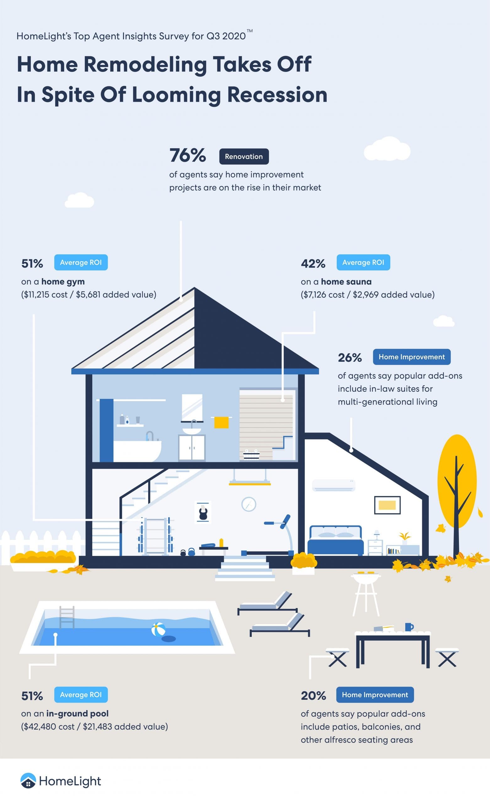 Your home is your sanctuary, but after being under quarantine due to the pandemic for months, it’s understandable that you’re itching for a change. Well, you’re not alone because 76% of real estate agents who were surveyed for HomeLight’s Q3 2020 survey said they’re seeing more homeowners roll up their sleeves and dive into a remodeling project or two.
